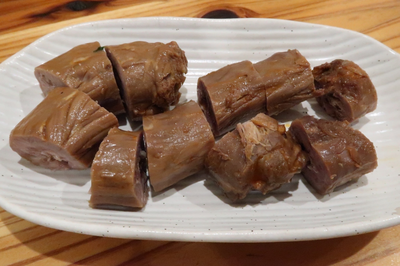 ●鴨脖子(鴨せせり麻辣煮) 骨の周りの肉をしゃぶります。麻辣煮というからには辛いのかと思いきや、ほんのりピリ辛味。おつまみにちょうどいいです。