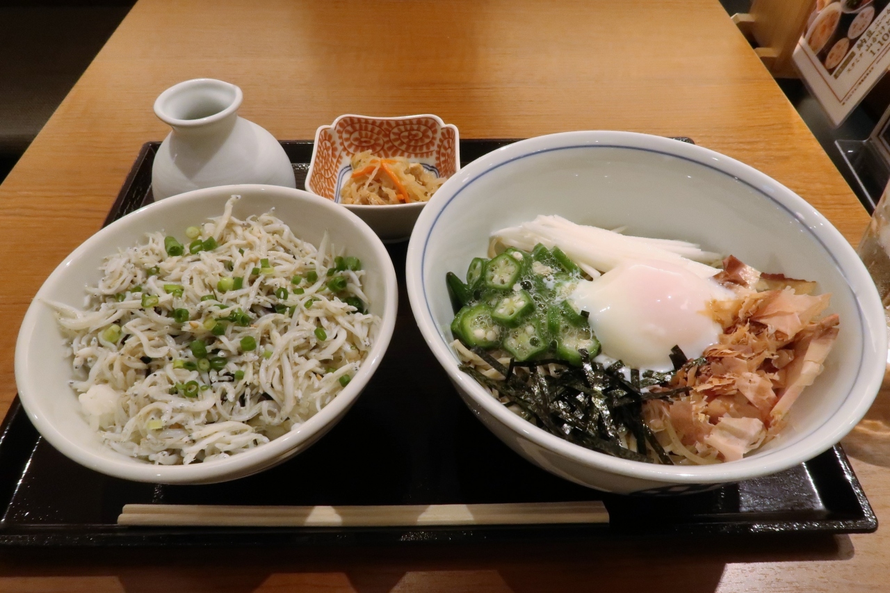 ●オクラと長芋ぶっかけ蕎麦と釜揚げしらす丼