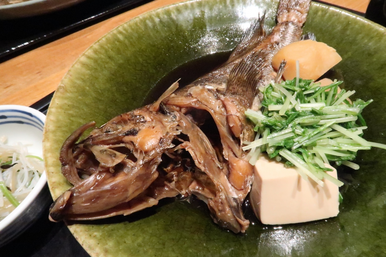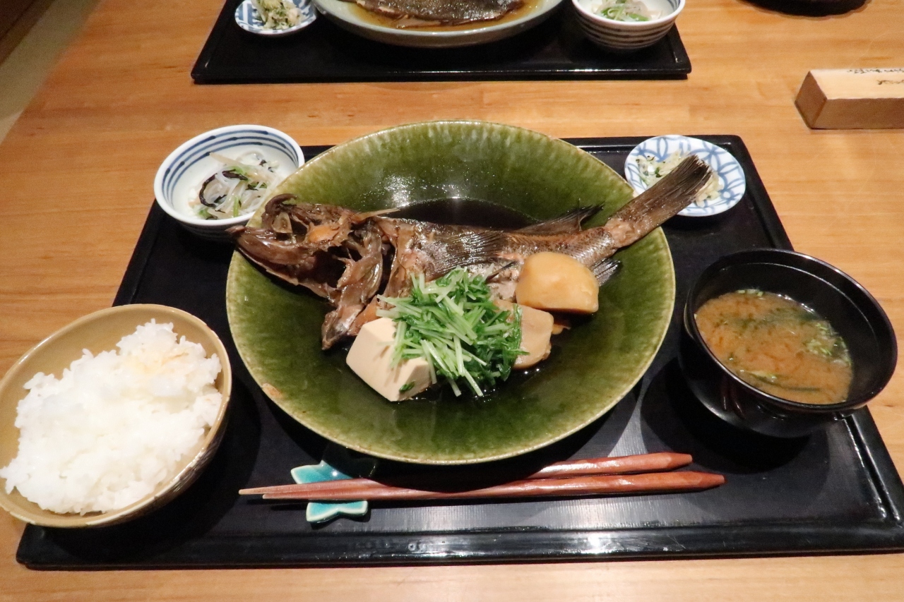 ランチで訪問。開店直後に入店。靴を脱いで上がると奥のテーブル席に案内されました。注文したのは煮付けの定食で真子鰈と曽以。定食にはもやし春雨ひじき和え物、漬物、味噌汁が付き、お代わり自由のご飯は残さず食べるとミニデザートも。