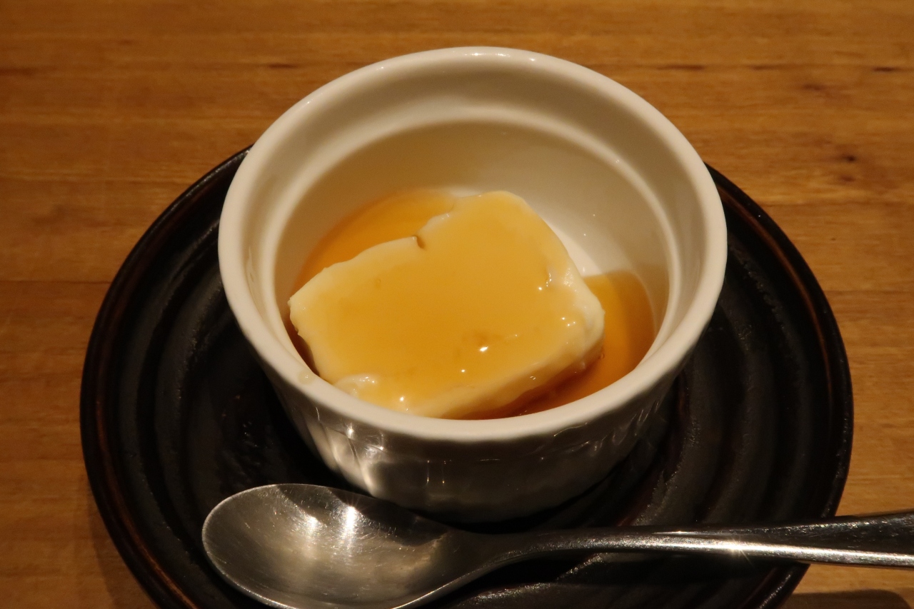 ●デザート みたらし豆腐 豆腐自体も少し甘めでプルンとした弾力。甘辛のたれはもう少しあっさりでもよかったか。和風杏仁豆腐といった趣。