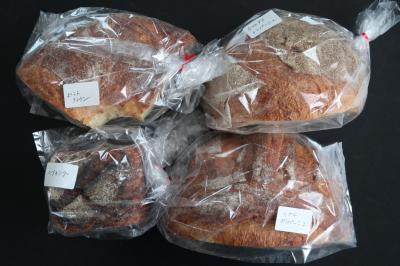 ●パン パン・オ・セレアル(胡麻)、チャバタトマトフロマージュ(ドライトマト)、ドライフルーツとナッツのパン、トウルト・ド・ムールの4種。トウルト・ド・ムールが皮の香ばしさ、風味、酸味がいいバランスでした。