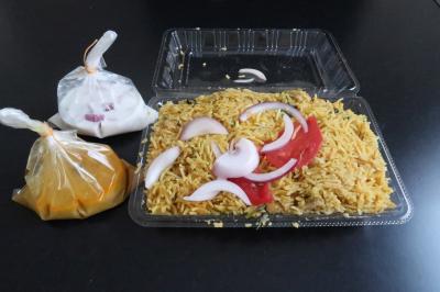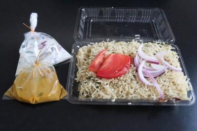 週末のランチで訪問。ただ当日は自粛期間中という事もありテイクアウトのみでの営業でした。メニューは2種類あり、チキンビリヤニとマトンプラオでそれぞれ一つずつの注文。自宅に戻り頂きました。