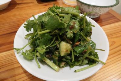 ●老虎菜(パクチーと青唐辛子の冷菜) 以前味坊で頂いた時より、青唐辛子の辛さがかなりきます。食感、香りも良く、辛みが口に残るのでビールがすすみます。