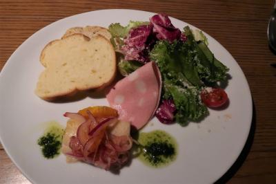 ●ワンプレート サラダ、モルタレッダ、カジキ包み焼き、パン2種(セモリナ粉、全粒粉)がセット。カジキにしては淡泊でしたので、もしかして冷凍物?オレンジとアーリーレッドのマリネと合わせて食べるというのは新鮮でした。パンは少々パサつきを感じました。