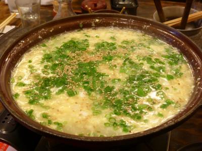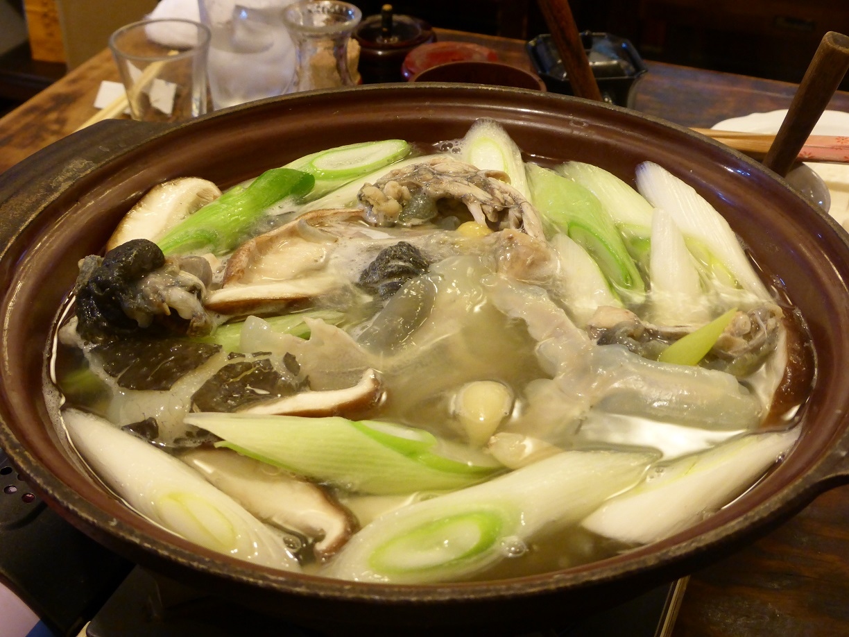 生血はリンゴジュースで割っているもので、大変飲みやすいです。レバ刺は鶏のレバー刺のようで舌触りも良くねっとりしておいしいものでした。肝の串焼きは甘辛な味付けが良く合い、唐揚げは淡白な身に油のこくが合わさりよりおいしくいただけます。そしてスッポン鍋。野菜は肉厚の椎茸、長葱。すっぽんの身は淡白ですが、滋味深いいい出汁が出ており、あっさりしているのにこくがあり旨いです。コラーゲン部分はプリップリ。食べ終わってから豆腐を入れます。このスッポンの出汁でいただく豆腐が美味。