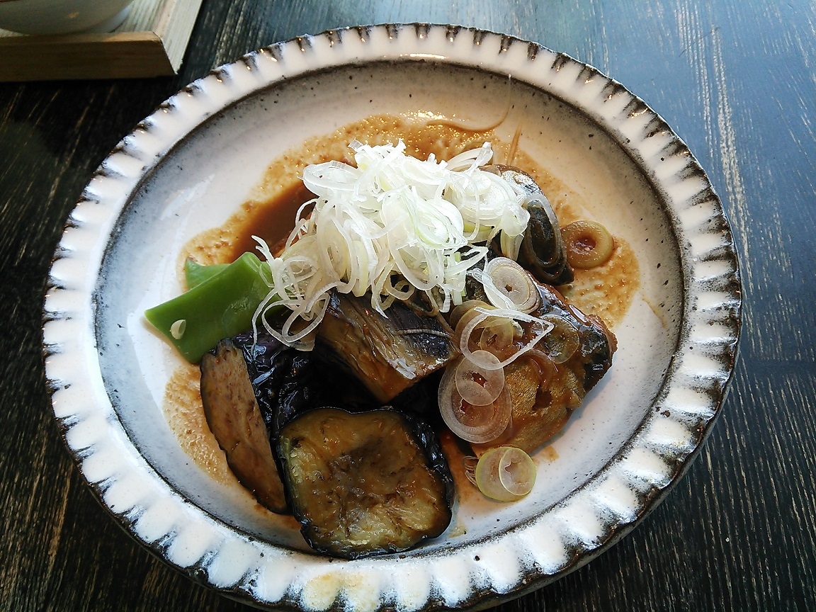 ●信州味噌のサバ煮 大振りの鯖が半身と茄子。所謂味噌煮とは違った味です。信州味噌のしっかりとした味付けでボリュームがあり、お腹一杯に。若い方にはこの量でいいのかもしれませんが、自分達の年になると半分で十分ですね。一番おいしかったのは意外にも味噌汁。定食屋などの味噌汁は味噌が濃すぎて少し塩辛く感じますが、こちらのものは味噌は薄味ですが出汁がしっかり効いていてほっとする味でした。