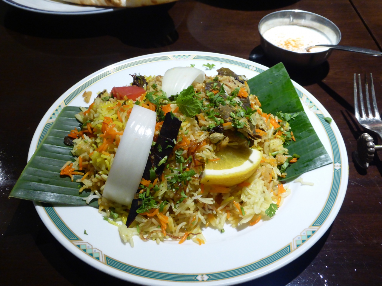 セットにはサラダが付き、間もなくニハリが。一口食べて広がるスパイシーさは初めて味わうものでした。骨付きラム肉から出る旨みとスパイスが混然一体となって非常においしい。後からじんわりと辛味が追いかけてきます。メニューには一応カレーとありますが、重層的にスパイスが溶け合うシチューという感じです。ナンのレベルも高く、ニハリとの相性も良く甘く感じました。ビリヤニもスパイスが効いていておいしいです。ただニハリの後に食べたのであっさりしたものに感じました。一緒に付いてくるライタをかけて食べると味も変わり楽しめます。