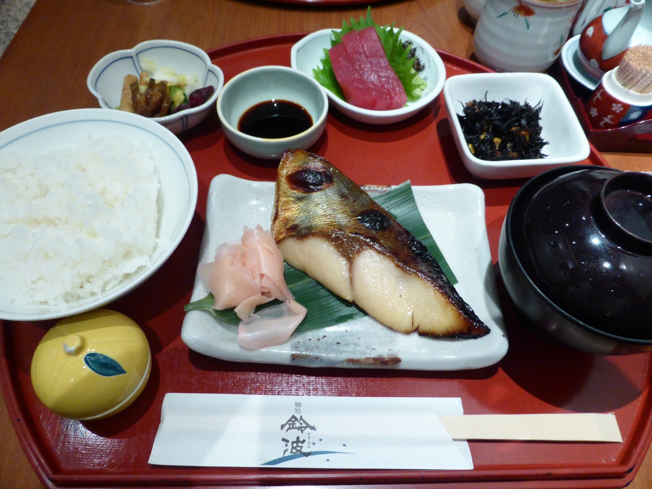 定食の小鉢のひじきの煮物、黒豆、香物、味噌汁、ご飯は共通。鈴波定食の魚は日替わりで当日は銀ひらす。味醂粕漬けにされた銀ひらすの身は引き締まり、淡白な中にも旨みと味醂粕のほんのりした甘みが入りおいしいです。黒豆やひじきもやさしい味付け。香物の種類も多く、それぞれ味わいが異なり楽しいですね。