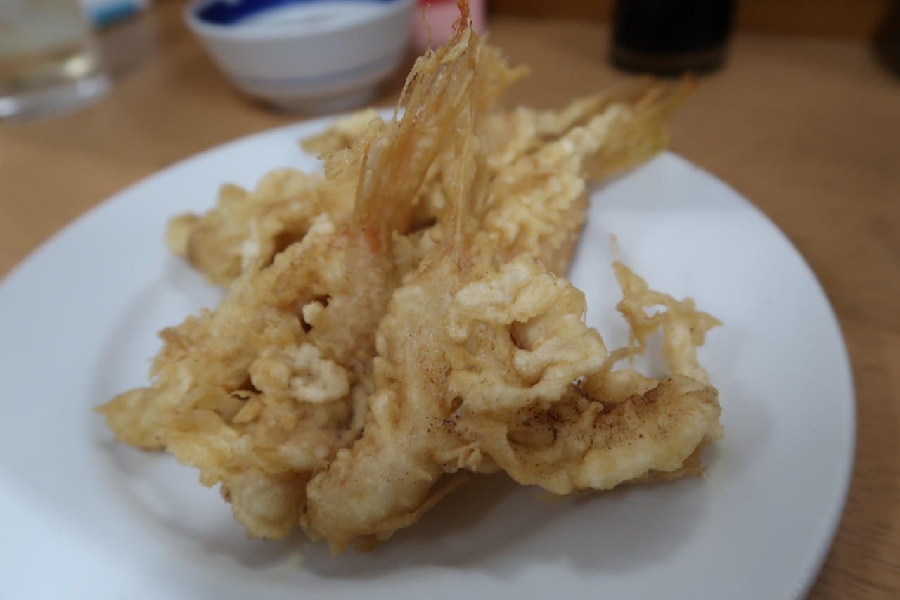 ●めごち天婦羅 天つゆか塩で。独特の歯ごたえと食感。身は淡泊ですが旨いです。