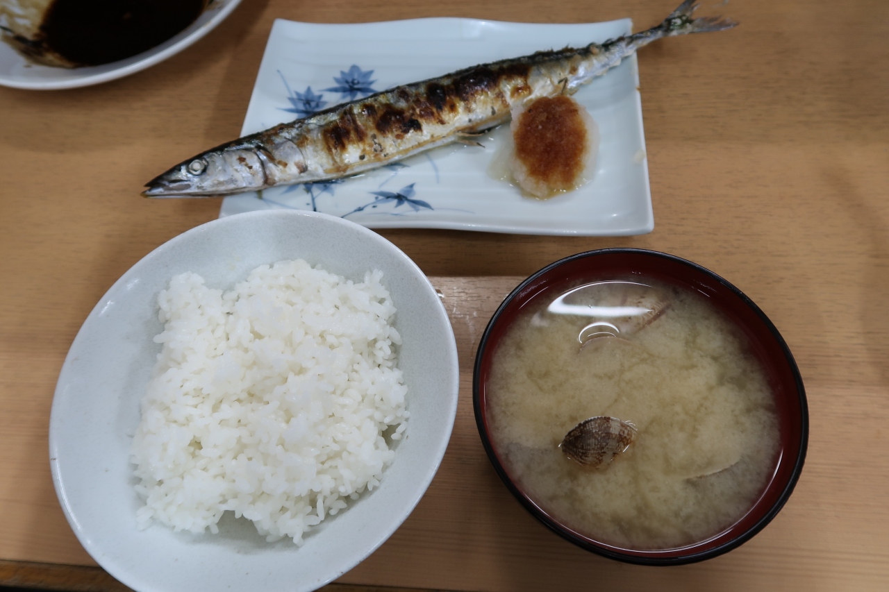 ●秋刀魚塩焼き定食 ガスオーブンで焼いたものですが、ふっくらした仕上がり。美味しい身と苦みのある内蔵、大根おろしが見事なマリアージュでした。やはりお店で食べる秋刀魚の塩焼きは一味違います。