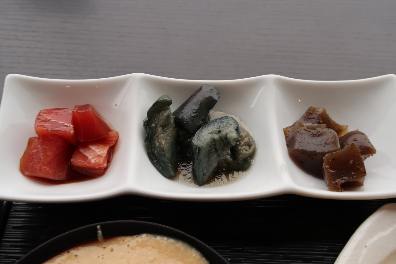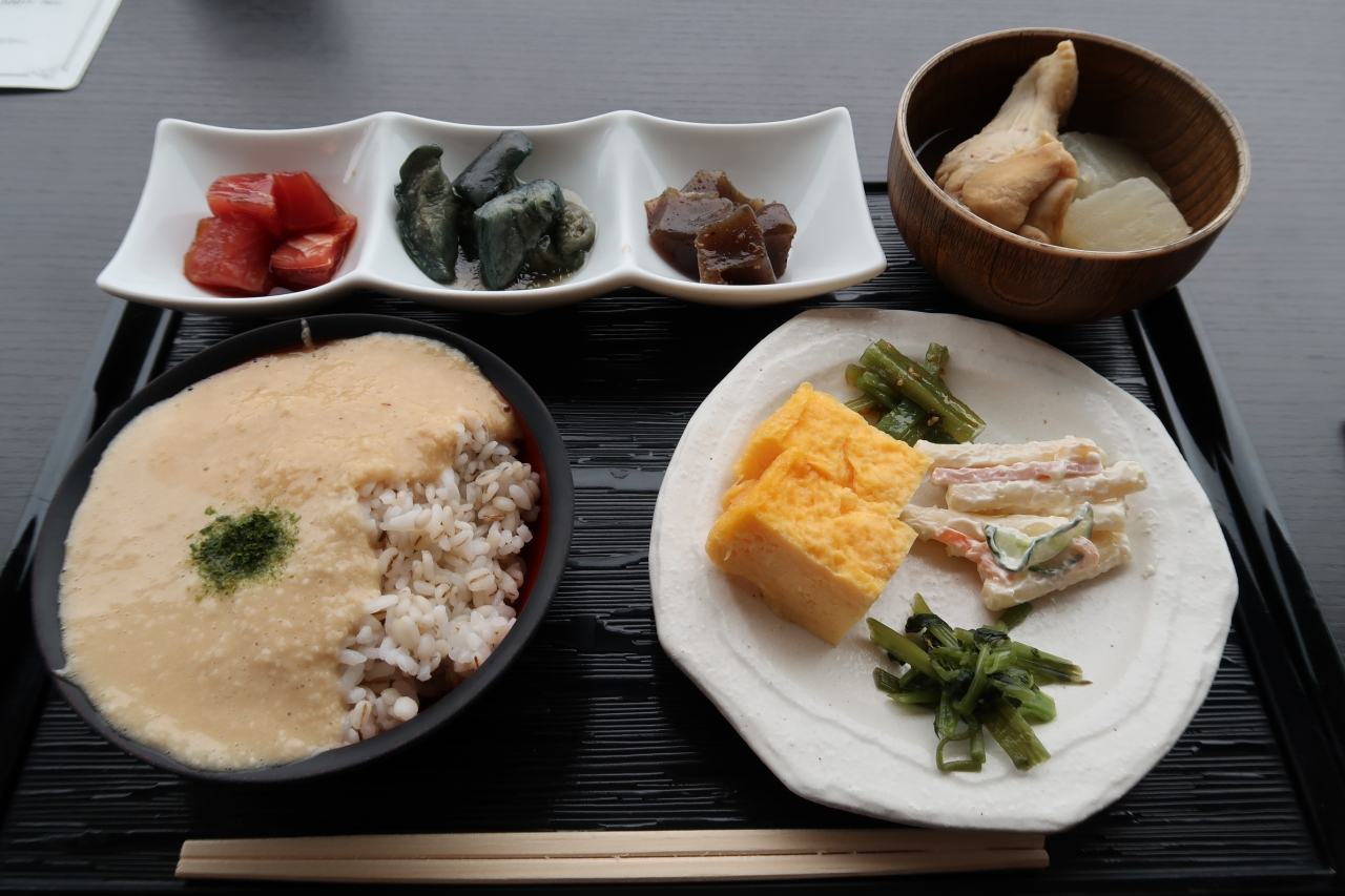 おかずでは手羽大根が優しい味付け。大根は厚切りなのにすごくやわらか。味も良く染みていました。種類も多く色々なものが頂けるのは魅力的ですが、やはりメインはとろろでしょう。一膳目は合掛けにし、二膳目は味付け、三膳目は味噌と存分に頂きました。どちらも美味しく好みではあると思いますが、純粋にとろろを楽しむなら鰹と昆布出汁に醤油の味付けの方ですね。