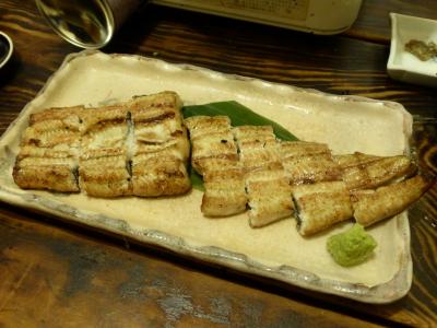 スッポンコースは生血、胆のう、レバ刺、肝串焼き、唐揚げ、スッポン鍋、雑炊、果物の以上です。お通しに鰻の肝の佃煮が出て、銀杏、骨せんべい、うなぎ串5本、うなぎ白焼き大、うなぎのつみれ、お新香、キムチを順次追加しました。