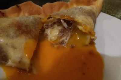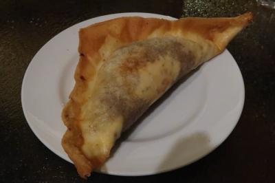 ●チュニジア餃子 挽肉、半熟卵入り。ナイフを入れると黄身がとろーり。挽肉とチーズ、卵が三位一体となって口で合わさり、さらに香ばしい皮の食感が楽しい一品。