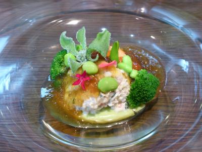誕生日も近いという事でフレンチのディナーを頂きました。一週間ほど前に予約。当日のコースメニューはアミューズ(サーモンチーズ)、蟹と海老のゼリー寄せ、ノルウェーサーモンと帆立のポアレ、イベリコ豚ポアレなど。どれも非常に上品で、味わい深く美味しいです。フレンチといっても下町なので肩肘張らずに頂けるので、また伺いたい店となりました。