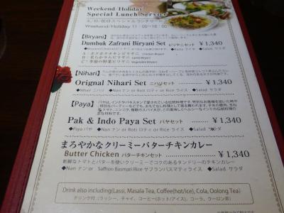 週末、美術展鑑賞後のランチで訪問。まだ12時前で先客は3~4組ですぐ座る事ができました。メニューを見ていて「ニハリ」って何?と俄然興味が湧いてきました。という事で注文したのは、ニハリセット(ナンで)とビリヤニセット(チキン)。