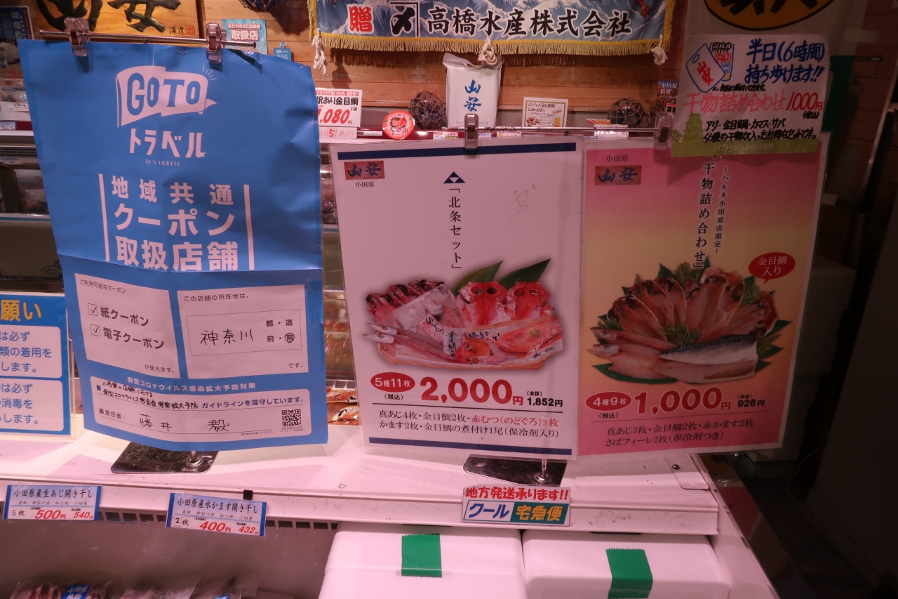 船山温泉からの帰りにお土産を購入しようと小田原へ。当初は駅前店に向かうつもりでしたが、そのままエスカレーターで地下へいくと同じ山安のHaRuNe店があったのでこちらで2000円の北条セットを購入。