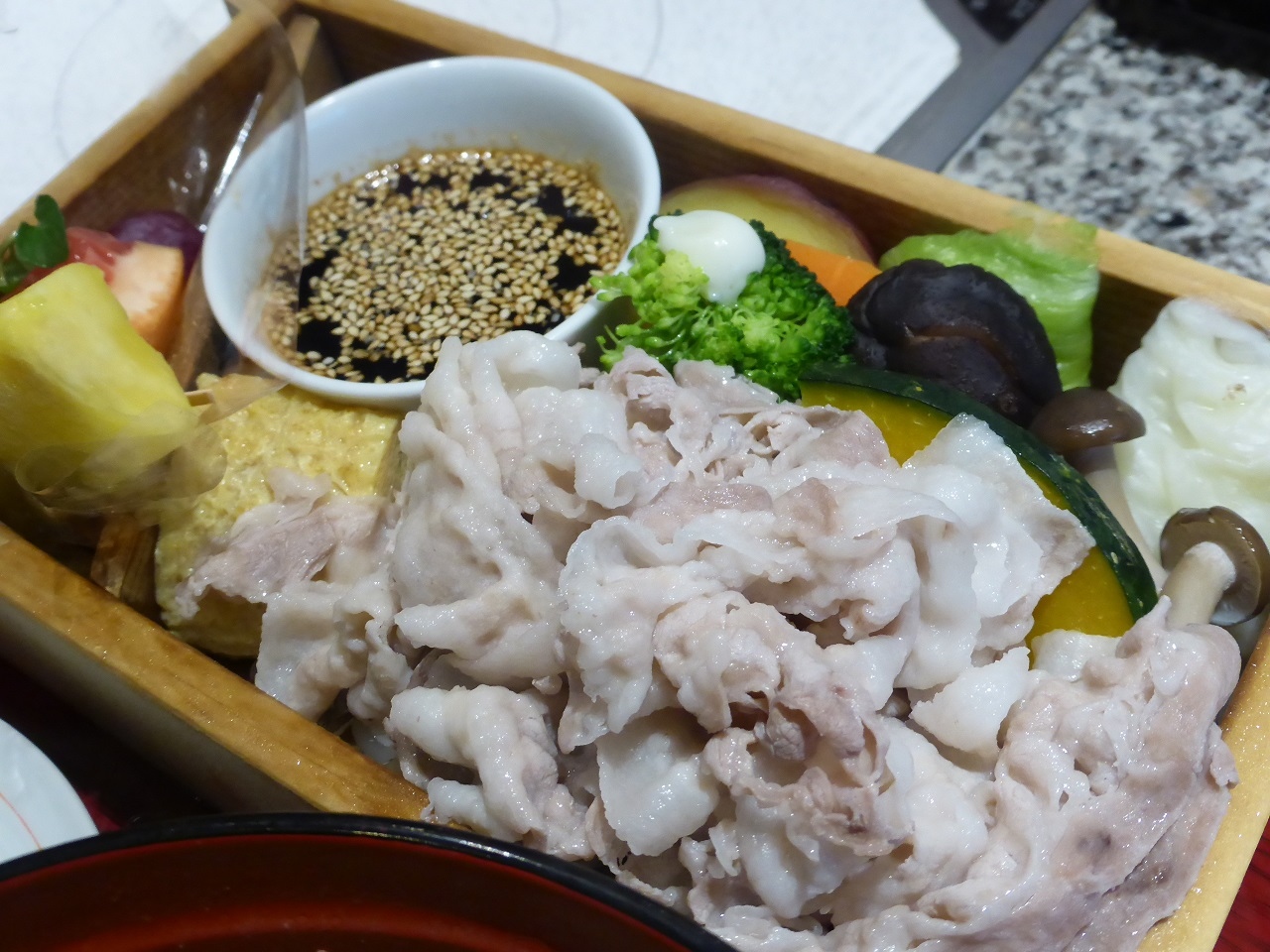 ●天然猪のお鍋(白菜、椎茸、長葱、エノキ、南瓜、小松菜他)