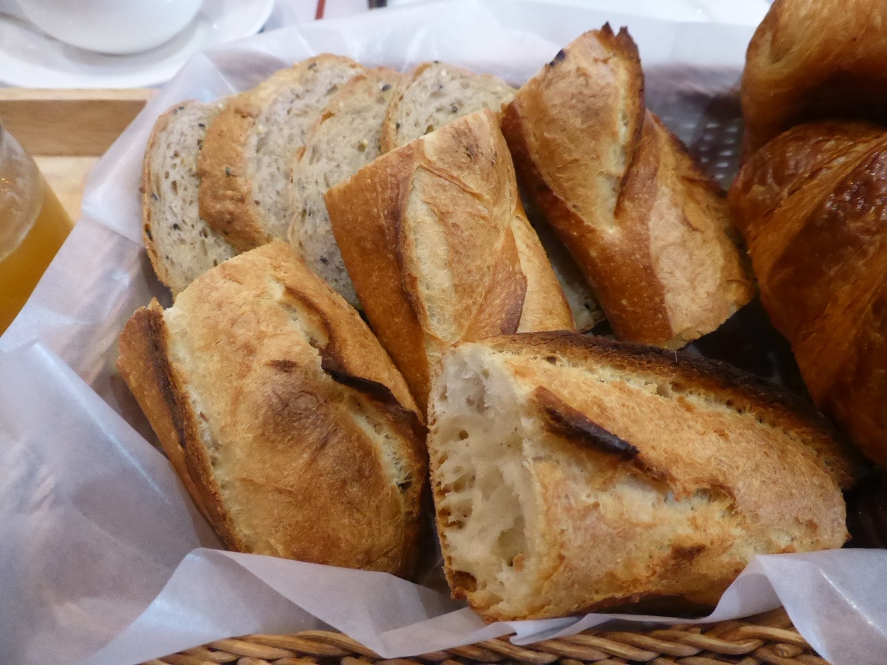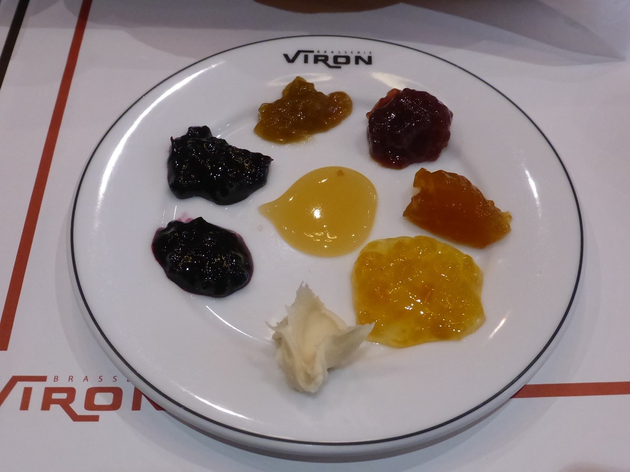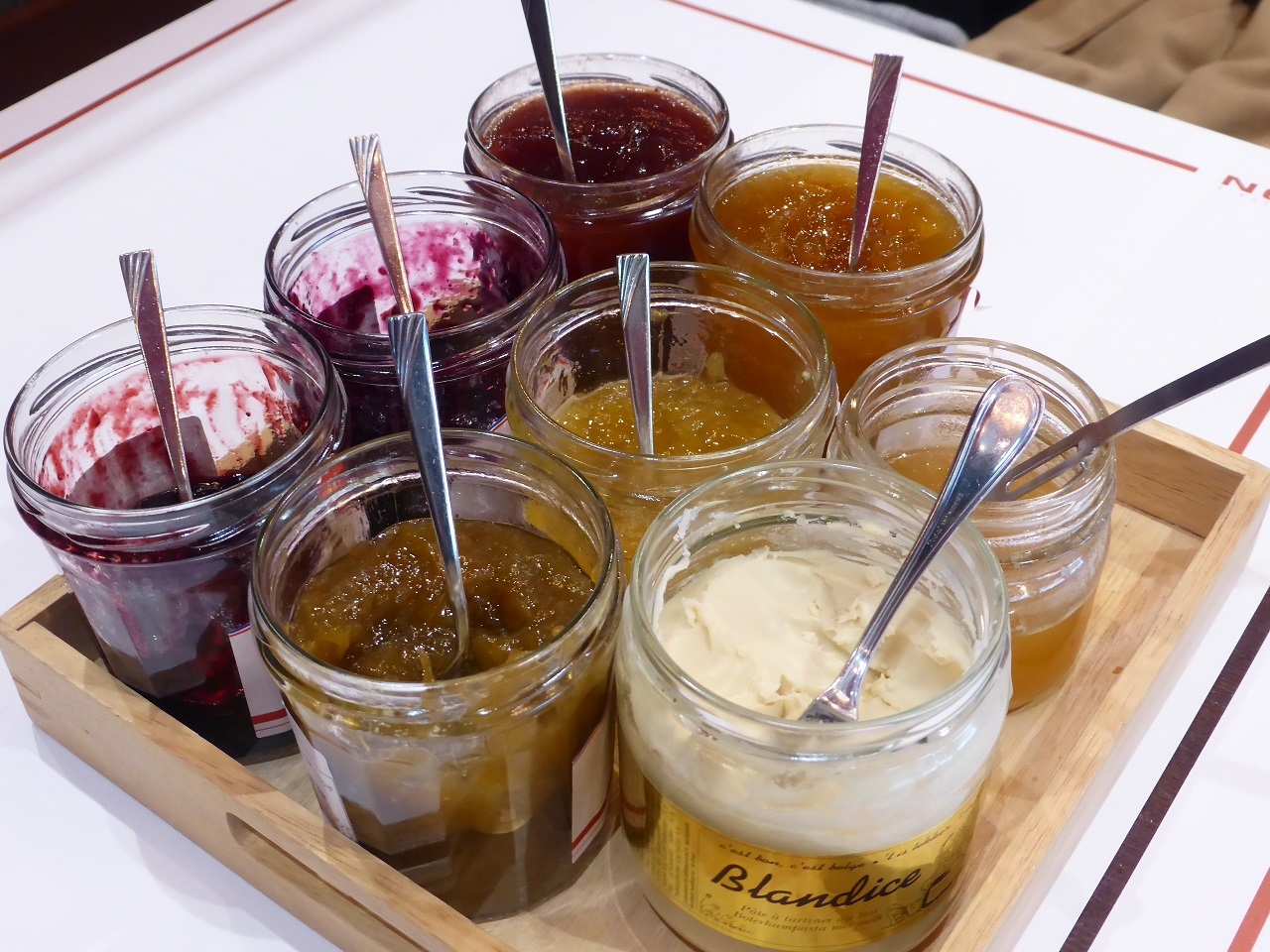 ジャムはアプリコット、ピーチ、ストロベリー、ブルーベリー、カシス、ルバーブの6種と、蜂蜜とチョコレート。どれも普段家で食べているものより格段に美味しく、特にピーチとアプリコットは味わいも新鮮で気に入りました。あえて言えばルバーブの酸味はかなり控えめで、もっと酢っぱ甘い方がいいのではと感じました。