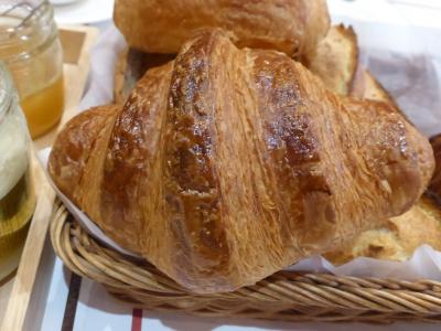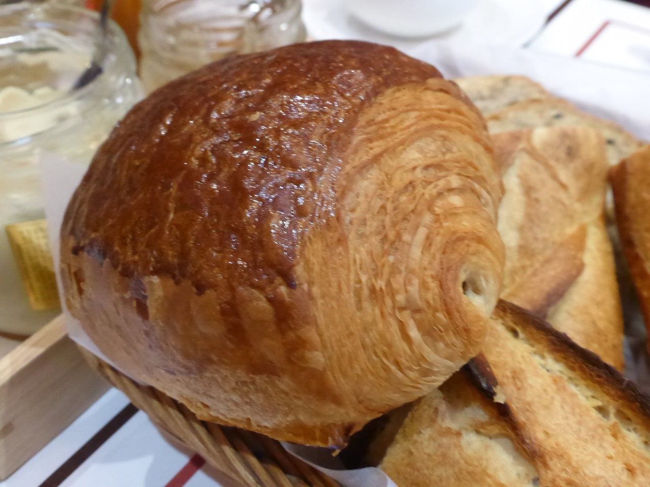 ●クロワッサンとパン・オ・ショコラ 普通の店のものよりかなり大きめ。穏やかなバターの風味とふんわりサクっとした軽い食感が楽しめます。が、焼きあがって少し時間が経っているのか、パリっとした感じが若干弱い。焼き立てを食べたかったですが、遅い時間に行ったのは自分達なので、仕方なし。