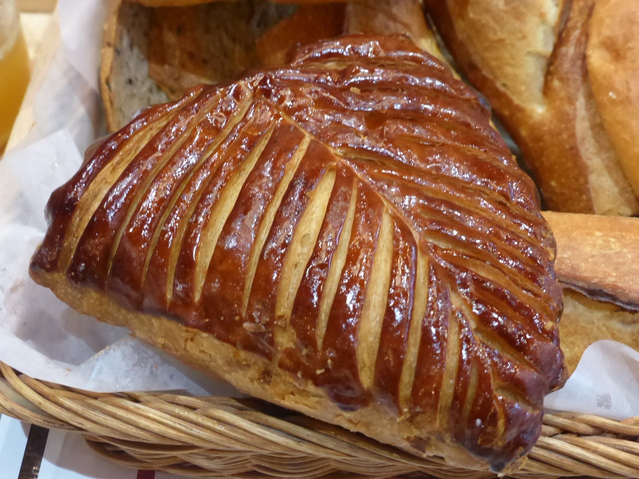●ショーソン・オ・ポム(アップルパイ) ずっしりとした重量感。見た目の焼き色もおいしそう。噛むと(クロワッサンより)バターの風味がしっかり。生地はサクっと香ばしく、端までりんごのフィリング入っていておいしい。食べ応えもあり、軽めのお昼ならこれ一個で十分です。