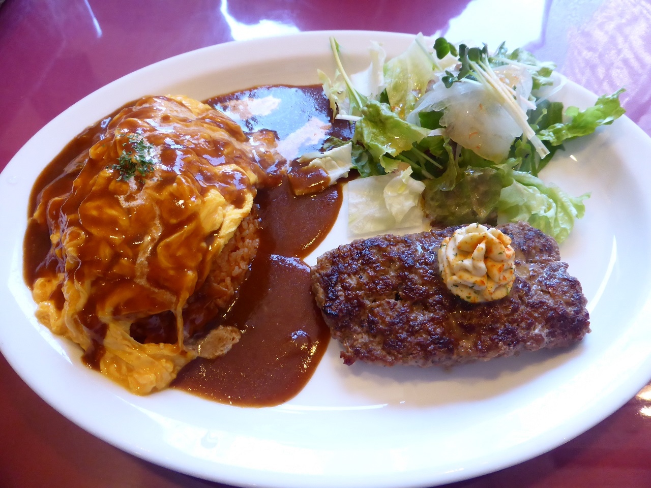 小石川後楽園に梅を見に行った際のランチ。日曜日に営業しているお店を探しこちらまで足を延ばしました。12時15分に入店。先客は4組ほど。注文したのはオムステバーとデミグラスソースハンバーグに牡蠣フライをプラス。セットでライスとスープ。
