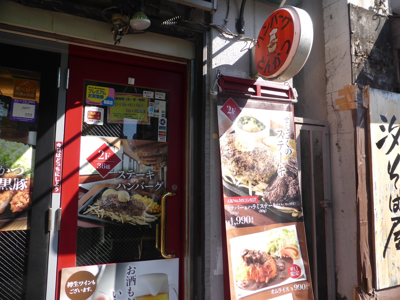 ●ステーキハンバーグ これは面白い食感。挽肉ではなく、細切り肉を纏めて焼いているので、ステーキのようでステーキではなく、粗挽きハンバーグの用です。肉の味わいもして、しかも食べやすいというこちらでしか食べられない食感のステーキでした。