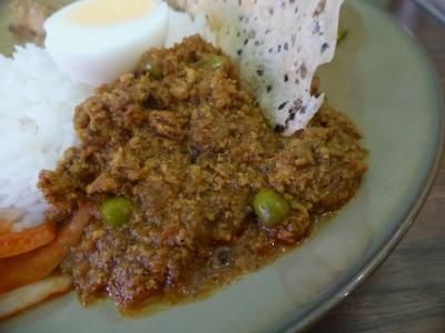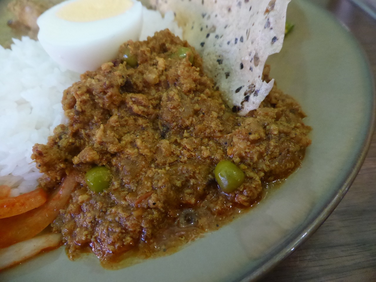 ●キーマカレーは淡雪のようなフワフワした口当たり。これは初めての食感です。凝縮されたキーマカレーが多い中、こちらのものはスパイスも控えめで比較的あっさりとしていました。しかし肉の旨味も感じられる絶妙な仕上がり。