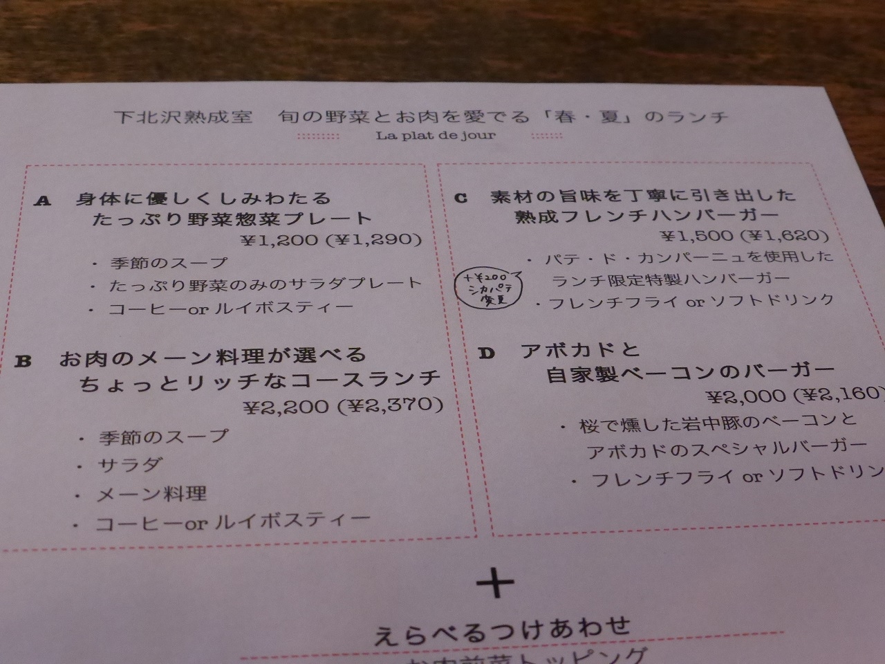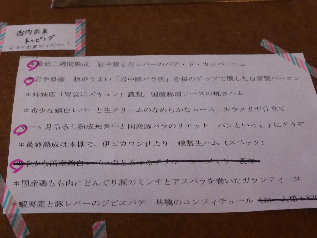 野菜の中ではラペがフルーツ人参が文字通りフルーティーで甘みも十分。そして野菜のドレッシングが何の味か分からず伺うと、金時人参とレッドオニオンで作ったものだそう。美味しくて最後まで飽きずに食べられました。ディナーメニューにはシャルキュトリーが豊富で美味しそうなものがズラリ。非常に興味があるのでまた夜に伺います。- 旅行時期