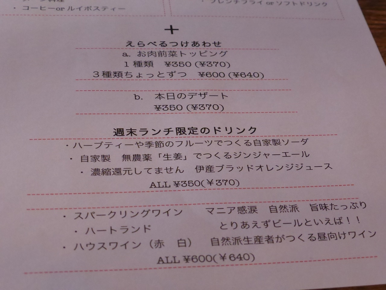 ●スープ 挽肉とベーコンで旨味を足しているのだが、それ自体が口に残り、スープとして頂くと邪魔をして今ひとつ。味もそれなりでもう少し深みが欲しい。
