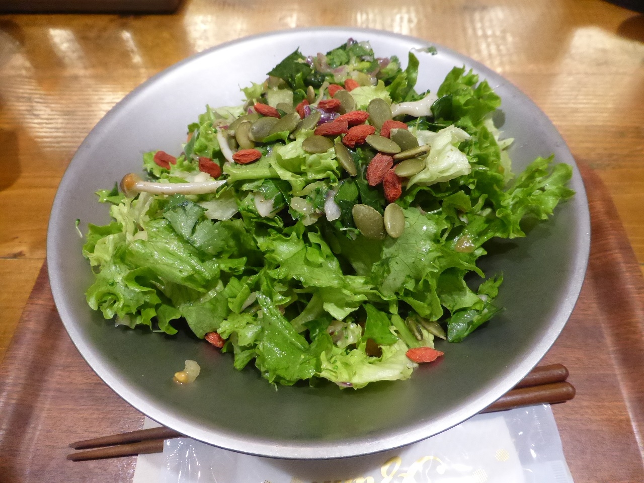 ランチで訪問。お店は新宿ルミネの地下にあります。注文したのはデトックスアジアンサラダとDIYスペシャルサラダ。ドリンクにはクランベリージュースとアイスティーを。大きな器にたっぷりの野菜。レタスが中心ですが、きのこやパンプキンシード、クコの実など種類も多く、食感の違いもあり飽きずに頂けます。野菜不足を感じている時にはちょうどいいように感じます。女性が多いのも納得のヘルシーやランチになりました。