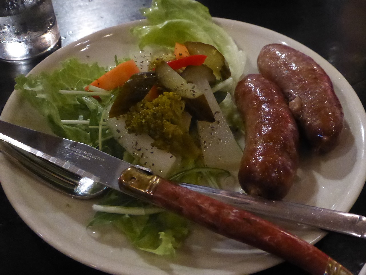 ●チョリーソ&自家製ピクルス チョリーソの肉は粗挽き。通常のものより肉々しく、ジューシーで旨い。スパイスが味を引き立てます。ピクルスの野菜はしっかり食感が残っているものでした。