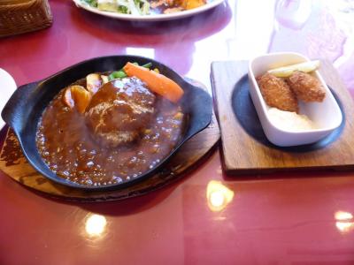 ●デミグラスソースハンバーグ 肉の一体感、ジューシーさもありまずまず。デミグラスソースの味はしっかりしていました。