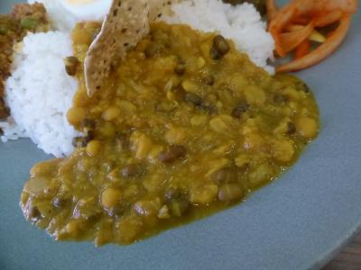 ●MIX豆カレー 豆はウラド豆とチャナダル。やさしい味わいの豆カレーです。煮込まれた豆のとろみが全体をうまく纏めています。