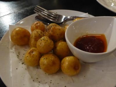 ●アンデスフライドポテト 外側は大丈夫でも噛むと中はまだ激熱。ハフハフしながらピリ辛のケチャップを付け頂きました。何でもない一品ですが、つまみにいい。