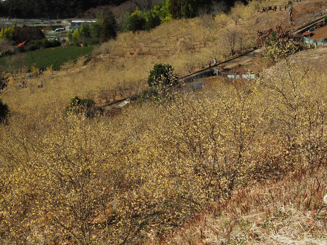 神奈川県の松田町にあるロウバイ園です。最寄の寄バス停までは小田急新松田駅前からバスで30分ほど。そこからはシャトルバスもありますが、大行列でしたので歩いて向かいました。この寄ロウバイ園は平成16年に地元の方々が荒廃農地を整備し、寄中学校卒業生が250株のロウバイを記念植樹したのは始まり。それが現在では2万本にもなっています。ロウバイ園内には甘い香りが漂い、可愛らしい黄色い花が一面に咲き誇り黄色い絨毯のよう。これだけ群落で咲いているのをみるのは初めてで、「日本最大級」と謳うに相応しい見事な光景でした。