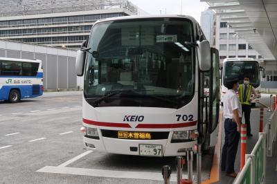 御嶽山登山旅行の際、木曽福島線を利用しました。今回はレンタカーを予約しており塩尻駅東入口バス停までの乗車。この路線は便数が少ないですが、このエリアに向かう高速バスは少なく貴重です。平日だった事もあり乗客は10人ほど。そして緊急事態宣言解除後、初めての高速バスだった事で、新たな案内が前席ポケットに入っていました。それを読むと車内の空気は概ね5分で全て入れ替わるそうです。ニュース等でも報じられていたので心配はしていませんでしたが、より安心して利用できました。
