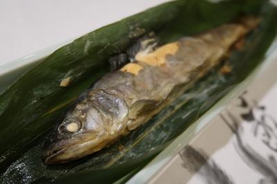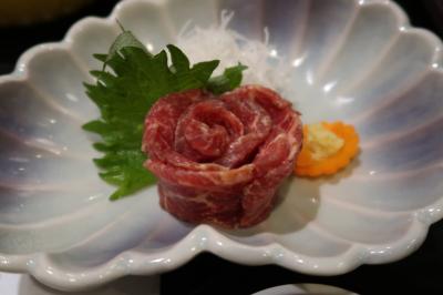 食事は18時から食事処で。馬刺し、マタタビ山椒味噌、蕎麦がき、干し蕨田舎煮、信州ポークしゃぶしゃぶなど、山の幸満載。さらにこの宿の名物でもある岩魚笹巻きは3時間蒸したもので、岩魚は頭から骨まで頂けます。笹の香りも良く三年熟成された味噌を挟んであり美味しかったです。