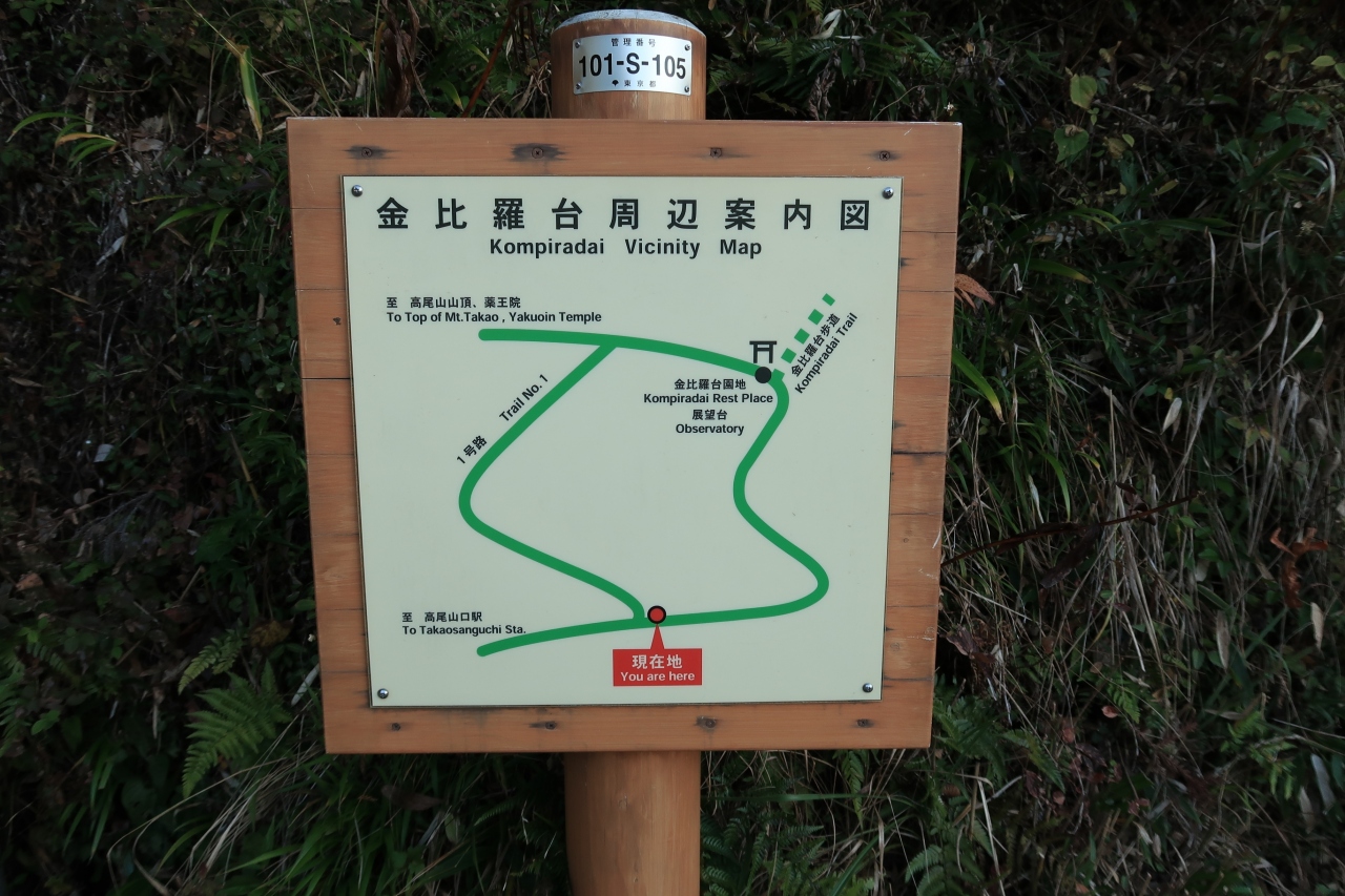 高尾山口駅から向かうともみじ通りを抜け一号路の入口にある碑です。直に自然に触れ、埋もれた文化財に出会える道として選ばれたコースで、「明治の森高尾国定公園」と、大阪の「明治の森箕面国定公園」を結ぶ、総延長1697.2kmの自然歩道。その基点となる場所がここという事になります。これは知らなかっただけにいい機会になりました。そしてこれが高尾山の一号路の始まりも表しており、気持ちも新たに出発できます。