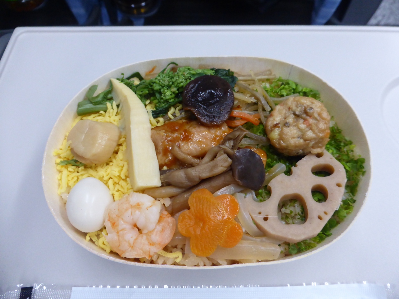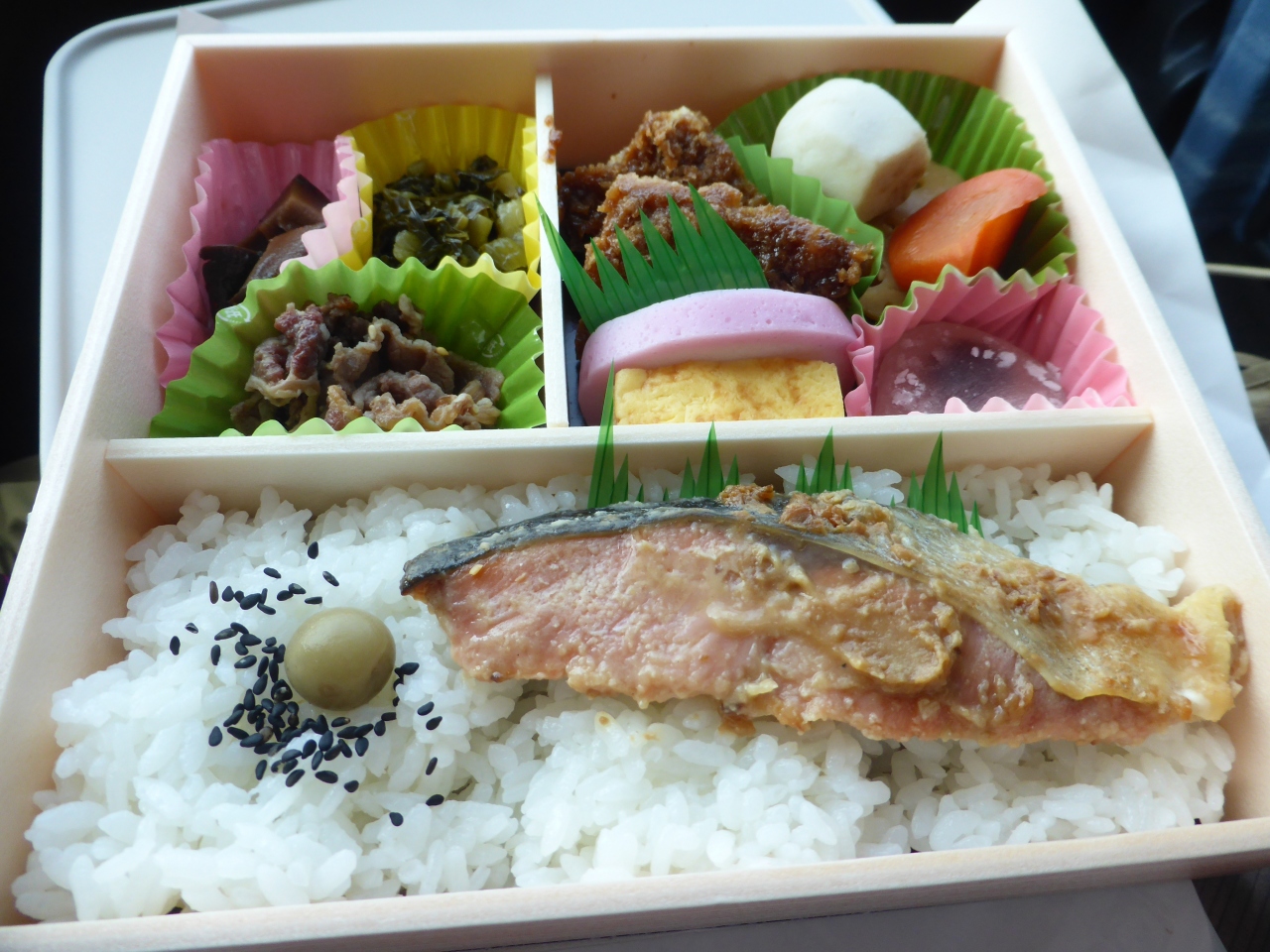 白馬旅行1日目。新宿7時30分発の特急あずさ3号に乗車するので朝食用の駅弁(五目わっぱ飯と新宿弁当)を購入しました。五目わっぱ飯は鶏照焼、鶏団子、海老、貝柱醤油漬、菜の花お浸し、煮物(蓮根・筍・うずら卵・椎茸・ひらたけ・飾り人参)蒟蒻、金平牛蒡、青のり、茶飯と盛り沢山。彩りも良く、少しずつ多くの種類のおかずがあり駅弁の楽しさも感じます。やさしい味付けのものが多く、美味しく頂けました。相方は新宿弁当。鮭の味噌焼、ソースカツ、椎茸煮、牛炭火焼肉、野沢菜炒め、蓮根の金平、里芋煮、人参煮、かまぼこ、玉子焼き、小梅ごはん、巨峰寒天餅など。いい意味で普通に美味しかったとの事です。
