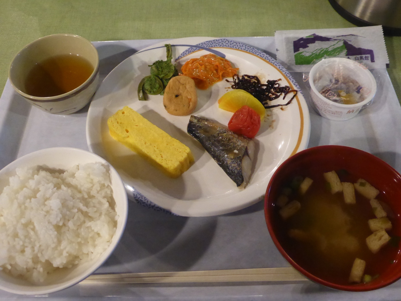 白馬岳から下山後に宿泊。予約したのは個室で@13500円(税込)。和室7.5畳+板間でトイレ、洗面は共同です。布団はセルフですが、山にある宿とは思えないほど部屋は綺麗で快適。窓からは白馬三山が見え、眺望も抜群でした。大浴場は温泉ではありませんが心地よく、何よりシャンプー、ボディソープが使えるのが有難い。食事も彩り豊か。肉、魚、野菜のバランスも良く美味しいものでした。立地なども含めトータルで考えると、非常にコスパのいい宿と言えるでしょう。