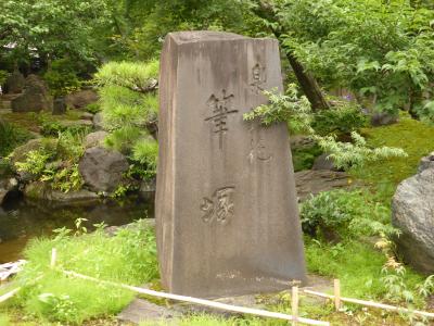 湯島天神境内には筆塚が2つあります。一つは「婦系図」の作者である泉 鏡花の「筆塚」。こちらは昭和十七年に、里見 惇、久保田万太郎、岩田藤七らによって建てられました。もう一つは竹が描かれたもの。(達筆でどなたのものは分かりません。)泉鏡花のものは流石に立派で庭園の中にあり景観も楽しめました。ただもう一つの方も、竹が描かれ、筆塚自体の雰囲気はこちらの方が好きです。どちらも解説の看板がなく、その場では建立された日時、意味が分からないのが残念。