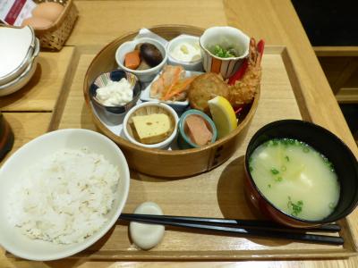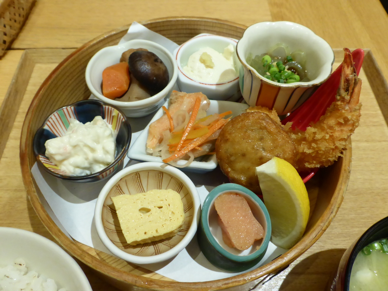 有楽町イトシアのB1にある和食屋です。ランチで訪問。注文したのは市川猿之助の楽屋めしと鮭西京焼き定食。楽屋めしは見た目も楽しく少しずつ色々なものが頂けます。エビフライ、炊き合わせ、卵焼きなど。鮭西京焼きは大振りで味噌の風味も良く旨味が凝縮されていました。やさしい味付けのものが多く、立地もいいので使い勝手のいい食事処だと思います。