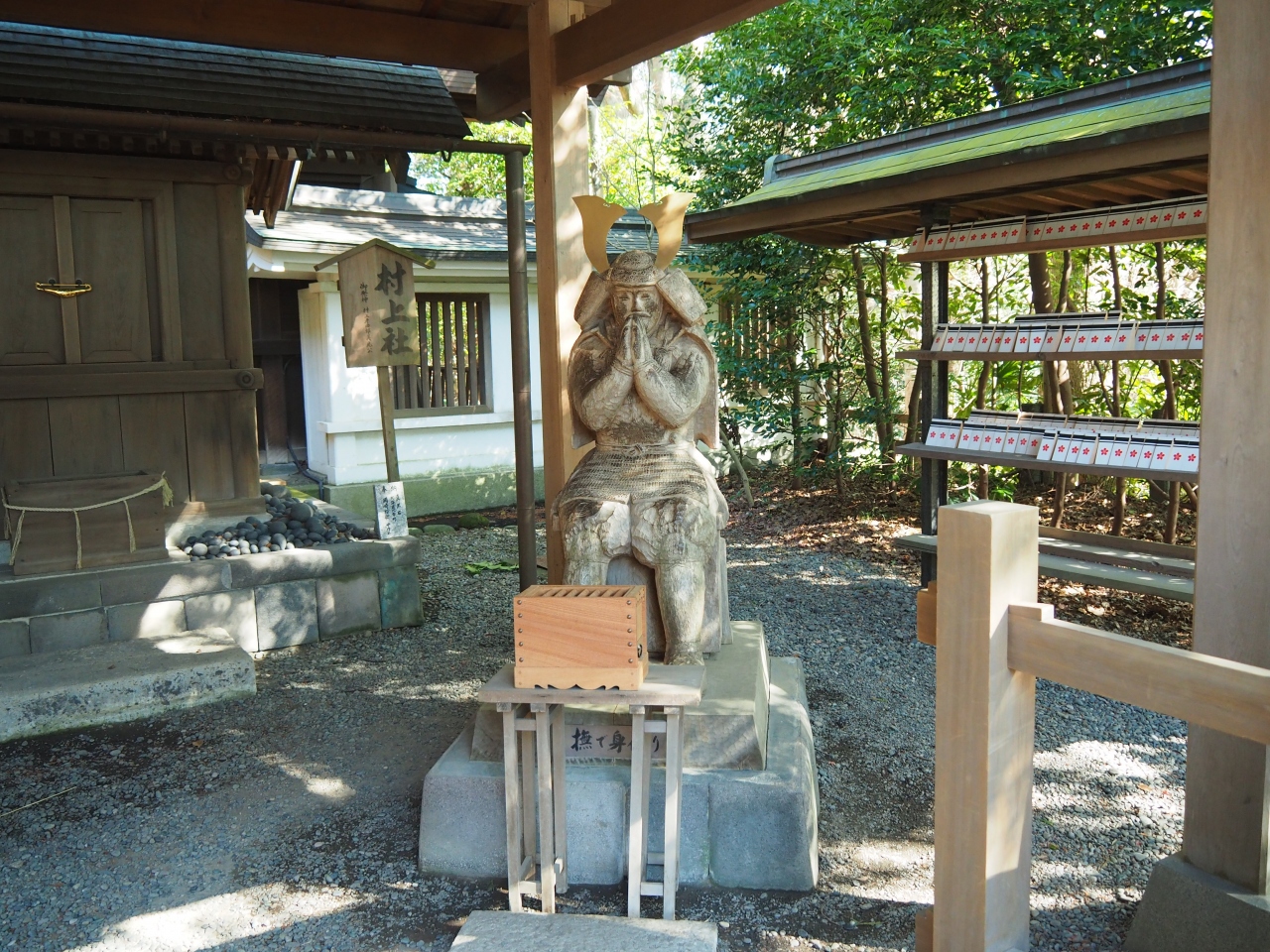 護良親王を祭神とした神社です。まず目を惹くのは鳥居の白さ。こんな真っ白に塗られた鳥居は初めて見ました。また村上社の前には村上彦四郎義光の木像があり、体の悪いところの身代わりになるというので、念入りに撫でました。鎧兜の彫刻がされているのですが、すでに凹凸がなくなる位ツルツル。それだけ信仰を集めている証拠です。