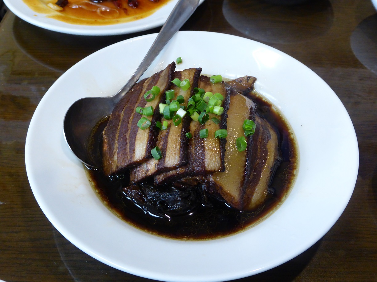豚ばら肉とからし菜蒸しは見た目ほど味は濃くなく、三枚肉を一度湯でこぼし、薄くスライスしたものをからし菜の上に乗せてたれをかけて蒸しているので脂も程よく落ちていてやわらか。さっぱりと食べる事ができます。たれは中国醤油ベースのようでした。