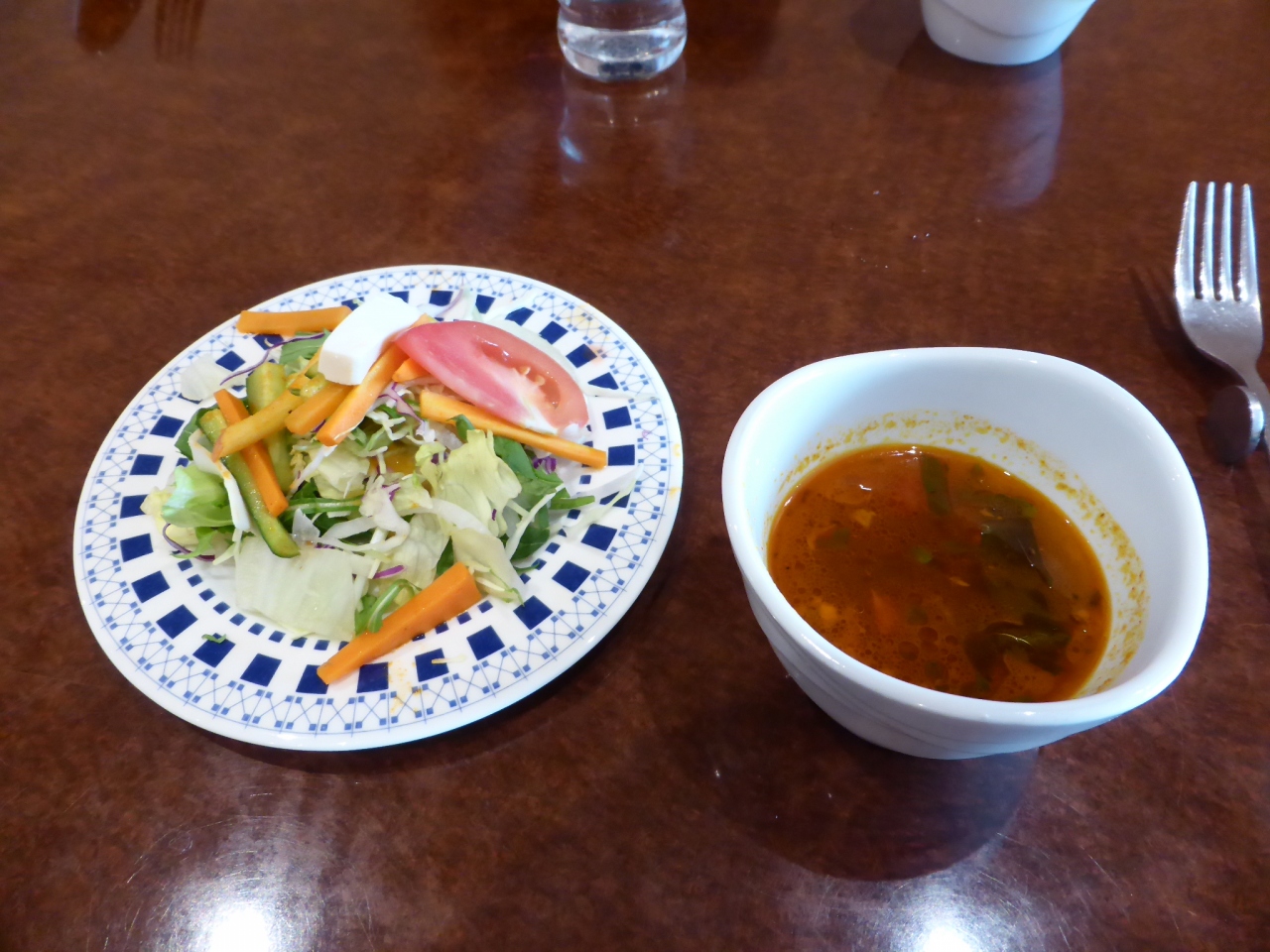ランチで訪問。12時前だったのですぐ入店できました。注文したのはビリヤニセットのチキン。ビリヤニはボリュームたっぷり。スパイスの香りが米にしっかりと移り、おいしいです。鶏肉もやわらかで食べやすい。食べ進むと後からスパイスがじんわり効いてきます。時々、よけ損なったカルダモンやクローブを噛んでしまうのが少々難ですが、これは仕方ないでしょう。