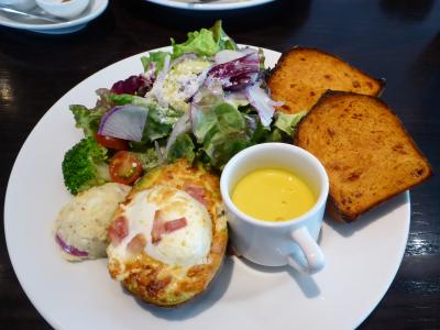 モーニングで訪問しました。パンサラダを頼もうと思っていたのですが、すでにメニューにはないのでアボカドエッグ・サラダプレートとベーコンエッグプレートを注文。アボカドエッグの卵は半熟、アボカドの熟度も丁度良く上質のアボカドでした。トマトブレッドも程よい酸味と旨みがあるおいしいパンです。ポテサラとサラダ、コーンポタージュでお腹も一杯です。ベーコンエッグも間違いない組み合わせ。トーストも香ばしさともちもち感がいいバランスです。小麦の風味も生きていておいしいトーストでした。たまにはこういう贅沢な朝食もいいですね。(夕食用のルヴァンも購入しました。)
