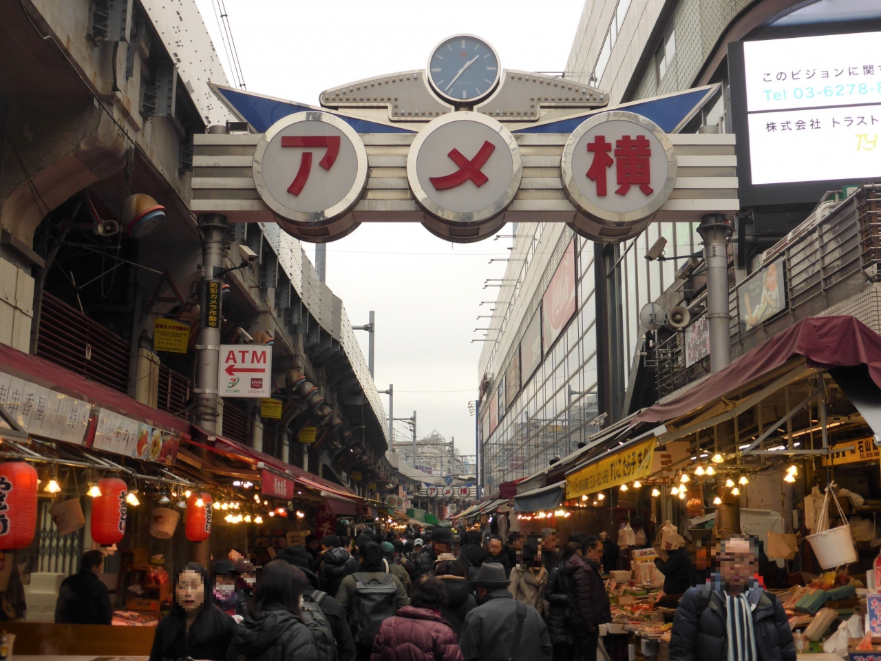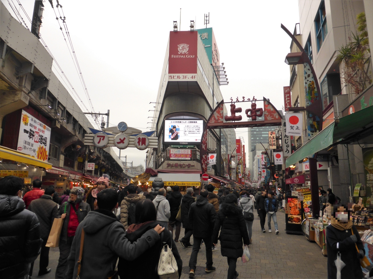 上野駅の南端から御徒町駅まで続く商店街です。外国人を初め常に観光客で賑わっています。最近は中国系の屋台の店も増えましたが、昔ながらの鮮魚店、乾物、菓子店や激安服などの店もあり、そのごちゃごちゃした感じが如何にもアメ横らしい。我が家御用達の店もあり、スパイスや豆などは安く買えるので助かっています。初めて来た方は様々な店がある事と人の多さに戸惑うとは思いますが、じっくり見て周ると楽しい商店街ですよ。