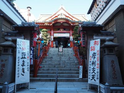江戸時代の初めに慈光院日遺上人によって創建。仏教の守護神である開運大摩利支天を奉安する事から摩利支天徳大寺とも称されます。現在の建物は昭和39年に再建されたもの。「気力・体力・財力」を与え、「厄を除き、福を招き、運を開く」と言われています。周りの喧騒からは一線を課し、非常にパワーを感じるお寺です。見どころも多く本殿正面に掲げられる扁額「威光殿」は吉田茂・元総理大臣の揮毫により寄贈されたもの。力強い筆の運びはこの寺にぴったりで必見です。また本殿横にある猪の像は摩利支天さまにお仕えするのは十二支の亥。このイノシシ像に触れる者に「気力・体力・財力」の御利益を与えて下さるとあるので、しっかりと触れておきました。