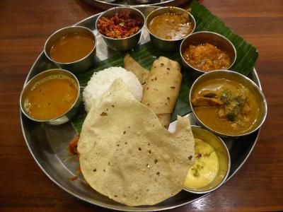 ランチで伺いました。アーンドラ・スペシャル・ミールス。ラッサム、サンバル、チキンカレー、エビカレー、マトンカレーなど盛り沢山。色鮮やかなポリヤルはビーツとココナッツの味わいが絶妙。エビのカレーは今まで味わった事のない旨味の強い余韻が残りました。今回一番おいしく感じたのはマトンカレー。肉の旨味がカレー全体に行きわたり、スパイスとのバランスもよかったです。全体的に上手く纏まっていますが、数年前に伺った時より少し味が落ちたように感じました。とは言え実力店であることは間違いないです。