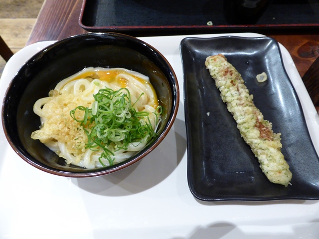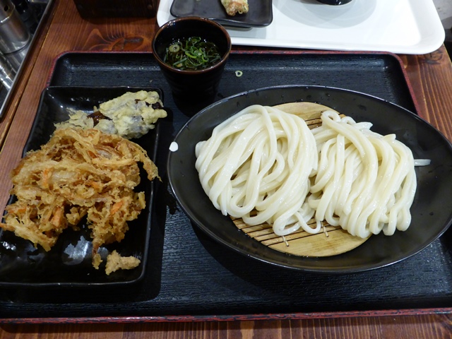 ランチで訪問。土曜日の12時で4~5組の入り。ざるうどんの大盛と釜たまうどんを注文。うどんを受け取ってから天ぷら(かき揚げ、茄子天、竹輪天)をセルフで取り、会計をしてから席に着きます。葱、天かす、生姜もセルフ。ざるうどんはこしがありおいしい。好みとしてはもう少しコシが欲しいところ。だしはすっきりした味わいです。釜たまは出し汁、天かす、卵がうどんに絡み、とろみとコクがプラスされ旨みが増します。天ぷらは揚げたてではなかったので、特に可もなく不可もなくです。立地も良く、リーズナブルにランチを済ませるには絶好のお店です。